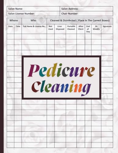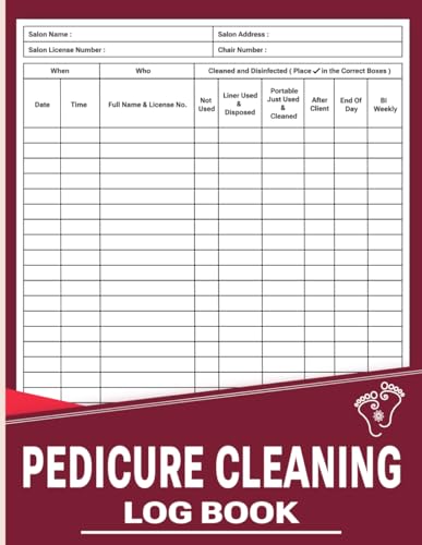 Pedicure Cleaning Log Book: for Pedicure Salons | Salon Sanitation & Disinfection Tracking Journal | Foot Spa Hygiene Compliance Logbook