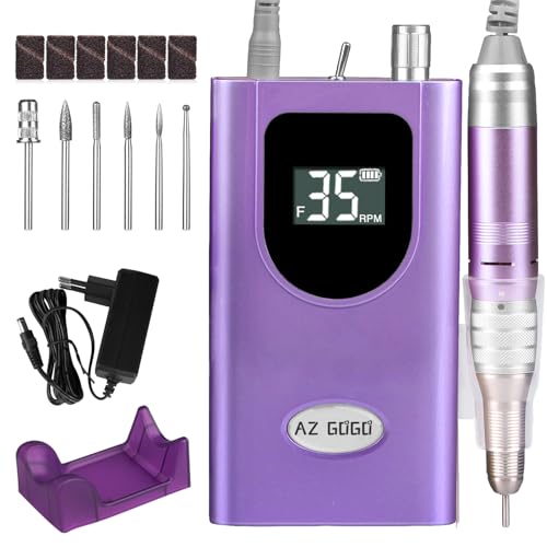 Elektrisk nagelfil 35000 rpm, AZ GOGO sladdlös uppladdningsbar elektrisk nagelborr med LCD-display, justerbar hastighet, manikyr och pedikyrset nagelfräs elektrisk för gelnaglar akrylgelnaglar