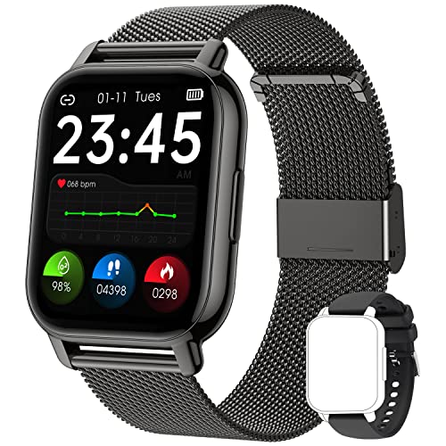 Popglory Smart klocka för män, med bluetooth-samtal, 1,85 tum sportsmartklocka, hjärtfrekvensmonitor, blodtryck, SpO2, pedometer, sova, smart klocka för Android iOS