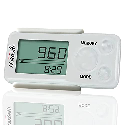 NAKOSITE PEDI2433-NVW Bästa 3D stegräknare pedometer med klipp och snodd för barn kvinnor män seniorer. Ingen Bluetooth. Enkel stor display