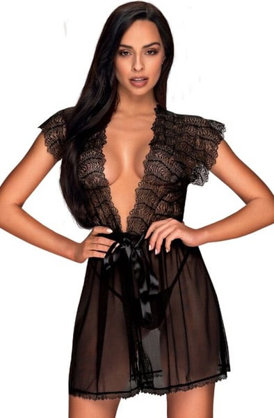 Obsessive 810-PEI-1 Peignoir Black - S/M