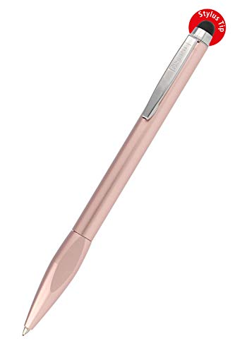 Online kulspetspenna och pekpenna i en metallkulspetspenna med pekskärm, ergonomiskt grepp, skrivfärg blå, utbytbar stor volymmin, multifunktionspenna, designfärg: Rosegold