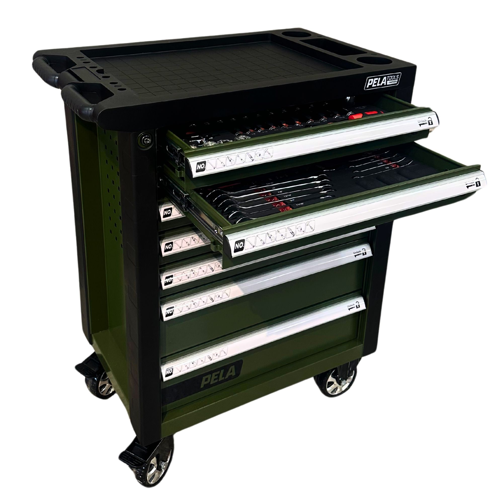 Verktygsvagn med sju lådor och verktyg limited edition, grön