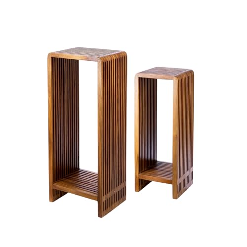 GILDE Uppsättning av 2 dekorativa pelare Cali av trä – rektangulär – naturfärger – höjd 86 cm x bredd 34 cm