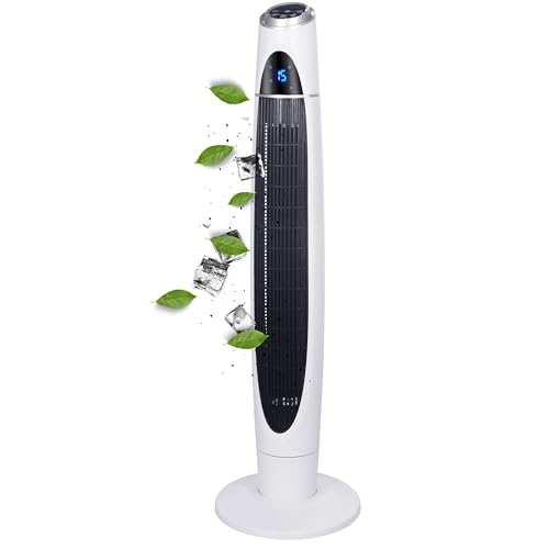YAZEKY Bladlös tornfläkt, tyst pelarfläkt med fjärrkontroll, 24 hastigheter, 60° oscillation, LED-display, 12 timmars timer, 97 cm, kraftfull skrivbordsfläkt