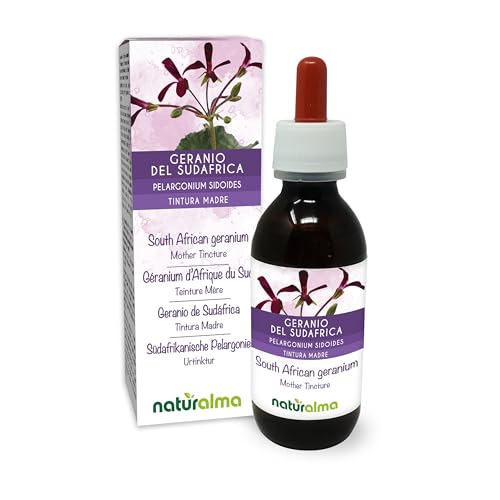 Sydafrikansk pelargon eller Mörk pelargon (Pelargonium sidoides) rötter Alkoholfri modertinktur Naturalma - Flytande extrakt i droppar 120 ml - Kosttillskott - Vegan