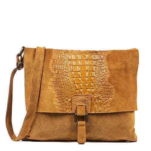 Firenze ARTEGIANI. Daniela Handväska Crossbody väska Dam.Äkta läder Graverad Mocka Krokodil .Väska Axelväska Dam.Made in Italienska. Vera Pelle Italienska.34x5x31 cm, Läder, Utility