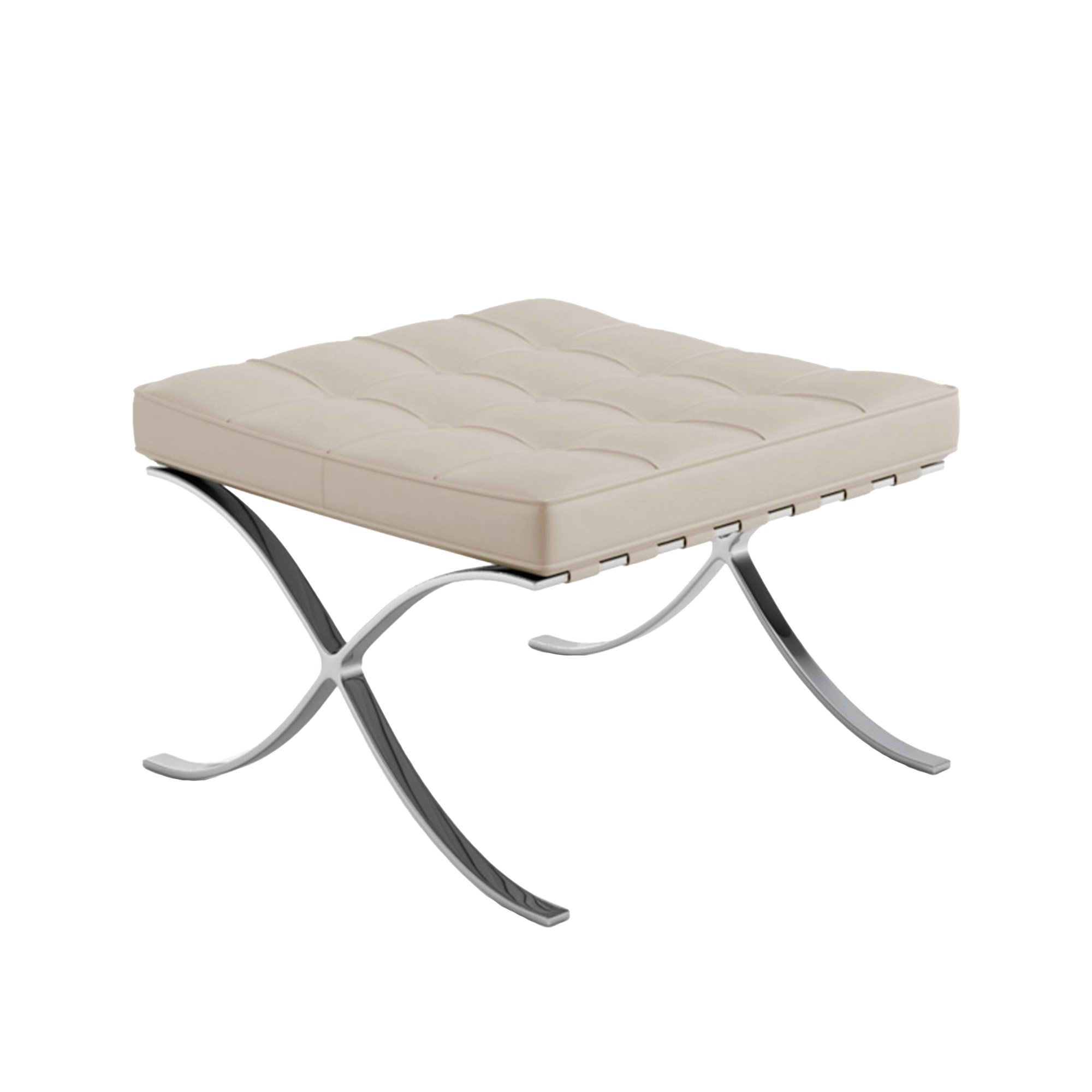 Knoll - Barcelona Stool, Läder: Kat. W Velluto Pelle - VP04 - Vit - Pallar - Ludwig Mies van der Rohe - Vit - Läder/Metall/Syntetiskt/Skum