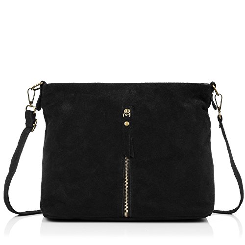 FIRENZE ARTEGIANI. Damväska Äkta läder.Väska Crossbody väska Finish Camoscio.Ficka Front Blixtlås. Väska Axelväska Kvinnor. Tillverkad i Italienska Vera Pelle Italiana, Svart, Utility