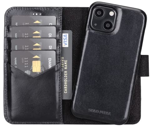 Solo Pelle Läderfodral kompatibelt för iPhone 13 Mini i 5,4 tum avtagbart fodral (2-i-1) inklusive kortfack för original Apple iPhone 13 Mini (äkta läder svart)