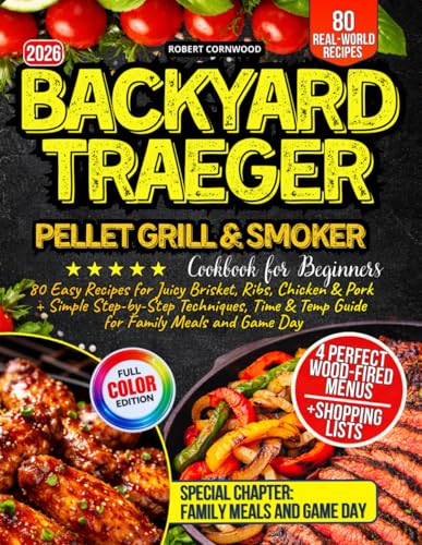 Backyard Traeger Pellet Grill & Smoker Cookbook for Beginners: 80 Easy Recipes for Juicy Brisket, Ribs, Chicken & Pork + Simple Step-by-Step Techniques, Time & Temp Guide for Family Meals and Game Day