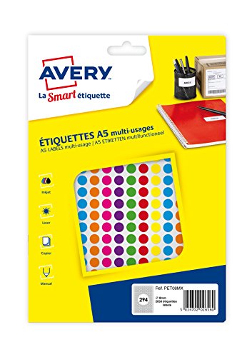 AVERY - Fodral med 2058 självhäftande pellets, diameter 8 mm