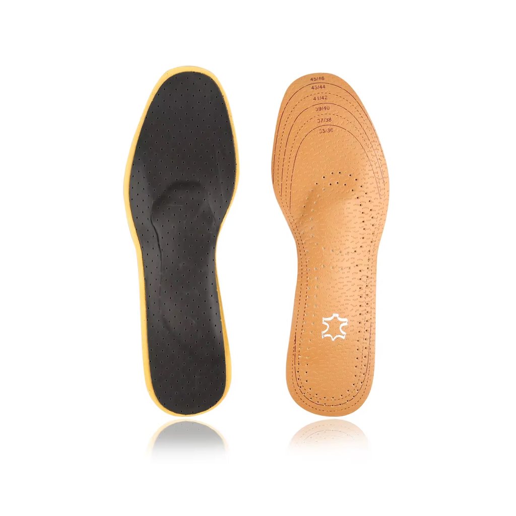 Högkvalitativ innersula i äkta läder med fotbädd och pelott, läder, ortopedisk, aktivt kol, antibakteriell, ventilerande, 45, beige