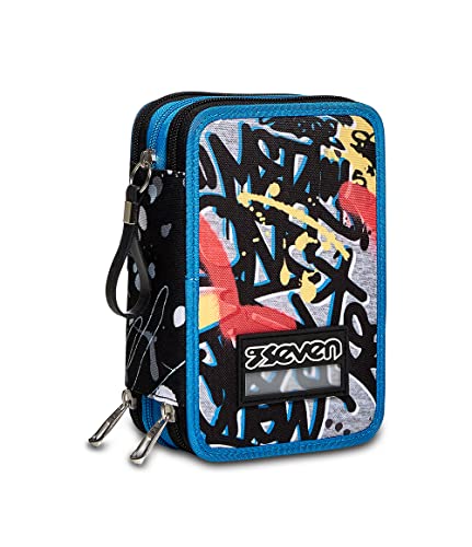 Seven Pencil case - Pen bag, multicolor, Box for Stationery, Pen Pouch filled with Pens, Markers & more, Perfect for School Supplies, for Teen Girls and Boys, 3 compartments, XXL BOY