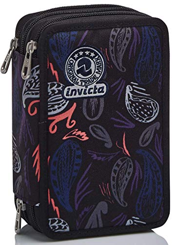 Invicta Pencil case - Pen bag, multicolor, Box for Stationery, Pen Pouch filled with Pens, Markers & more, Perfect for School Supplies, for Teen Girls and Boys, 3 compartments, XXL STREET JUNGLE