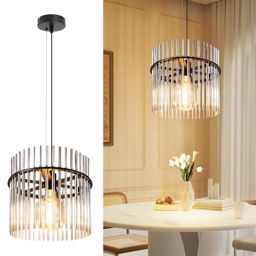 BRILONER - Pendellampa retro, hängande lampa, vintage, hängande lampa tygskärm, matrumslampa, höjdjusterbar, E14, silver-svart.