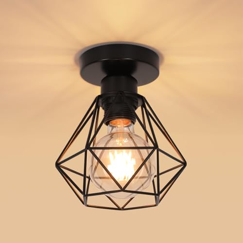 DELIPOP Taklampa vintage, industriell pendellampa av järnbur, retro taklampa E27 hängande lampa lampskärm för hall arbetsrum kök kontor sovrum