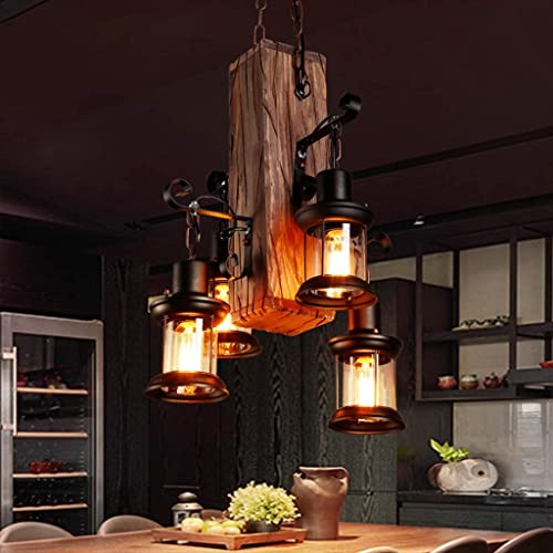 Retro ljuskrona pendellampa, COCOL industriell loft hängande lampa trä dekorativ hängande lampa metall höjd justerbar E27 retro trä pendellampa för matsal bar restaurang vardagsrum kafé (utan