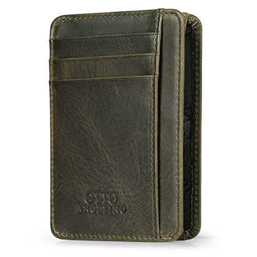 Otto Angelino Plånbok i äkta läder korthållare bankkort, pengar, körkort - unisex, gRÖN, en storlek