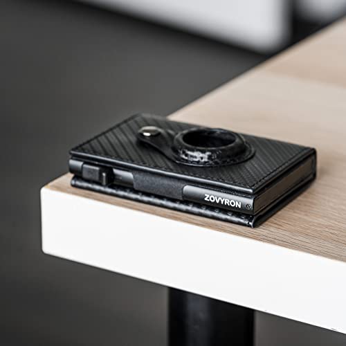 ZOVYRON Airtag plånbok män smart plånbok smal minimalistisk RFID framficka plånbok med Airtag-hållare metall pengar korthållare, kolfiber svart, minimalistisk