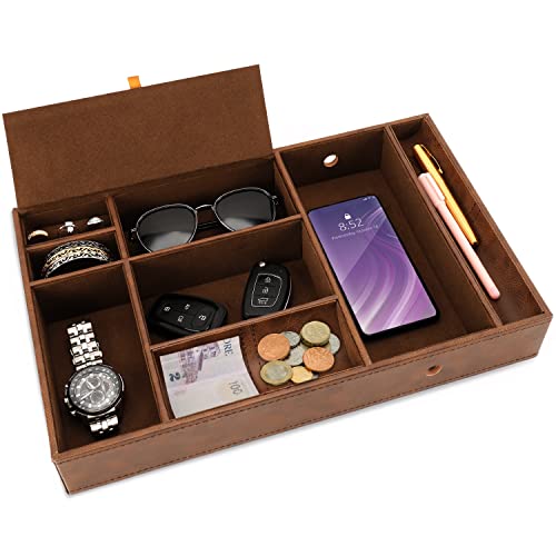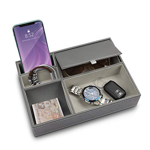 Belle Vous Bruna Byrå-/Sängbordsbricka i Konstgjort Läder - Skrivbordslåda med 6 Fack för Plånbok, Mobil, Nycklar, Smycken, Mäns Accessoarer, Pengar, Manschettknappar - Uppsamlingslåda för Sängbord