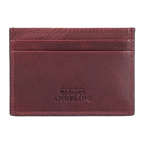 Otto Angelino äkta läder korthållare plånbok – bankkort, pengar, körkort, RFID-blockering – unisex, Rödbrun, en storlek