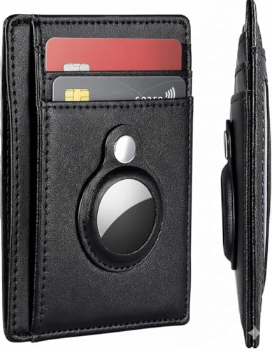 KF-Premium svart minimalistisk Airtag RFID-plånbok PU-läder kreditkort pengar hållare AirTag-skydd Air Tag-fodral, Svart, ledig