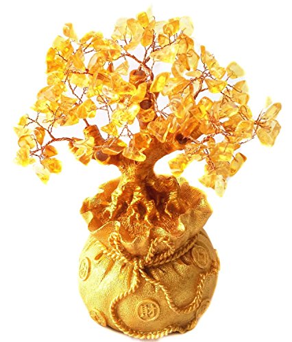 Itian gul kristall citrin pengaträd i en pengaväska för rikedom tur