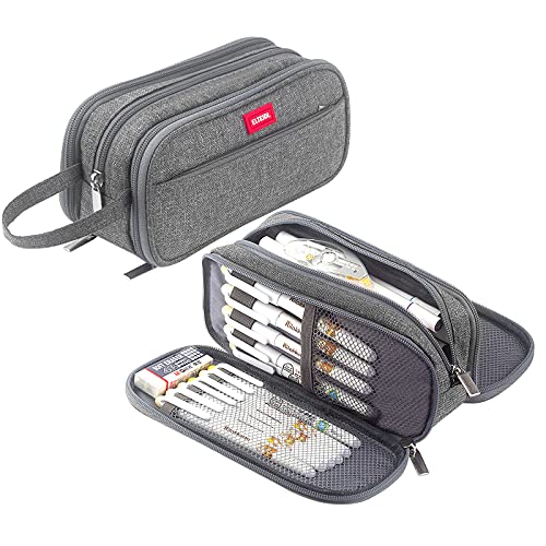 Stort pennfodral med stor kapacitet, handhållet pennfodral med 3 fack, pennskrin för pojkar, flickor, vuxna, studenter, affär, kontor. (ljusgrått)