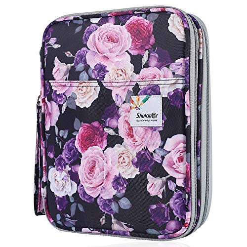 Shulaner Färgat pennfodral rymmer 192 pennor eller 144 gelpennor med dragkedjestängning, stor kapacitet, polyesterpennorganisering för markörer, akvarell, färgpennor, gelpenna, Lila ros, 192, Modern