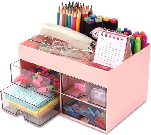 KAHEIGN Skrivbordsarrangör med 4 lådor, 19 cm x 14 cm multifunktionellt skrivbord, prydligt organiserare, stor kapacitet, pennhållare, sminkorganisatör för barn, lärare, gåva, kontor, skola, hem,