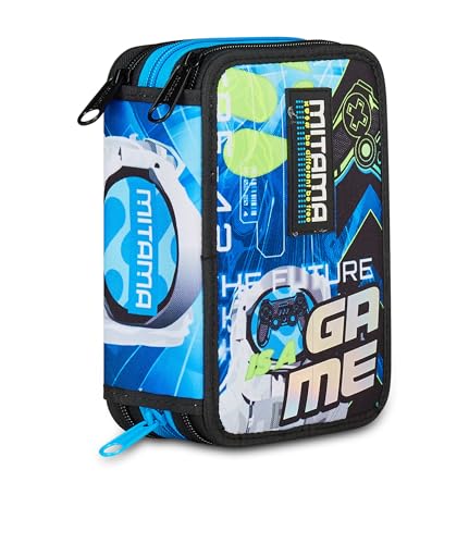 Mitama Pennfodral Skola 3 Fack SUPER TRIPLE OCTO GAMER, Blå - Innehåll 47 st - Komplett med pennor, markörer etc..- Pennhållare för grundskolan Barn, Blå, Taglia Unica, skola