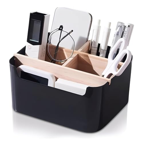 Marbrasse skrivbordsorganisatör i trä, pennhållare för skrivbord, stationär organisatör, skrivbordsförvaring organiserare, caddy (Svart trä)