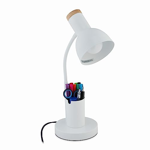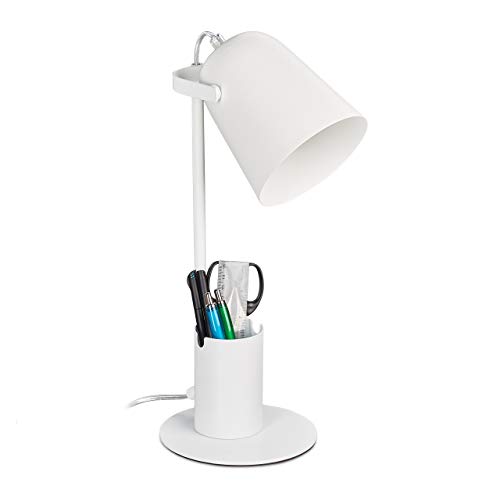 Relaxdays Skrivbordslampa med pennhållare, kontorslampa skrivbord, E27, modern bordslampa, HBT: 40 x 15 x 20 cm, vit