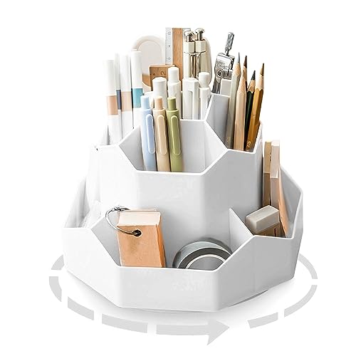 Marbrasse Skrivbordsorganisatör, 360-Graders Roterande Pennhållare för Skrivbord,Skrivbordsorganisatörer och Tillbehör med 5 Fack Pennorganisatör,Organisatörer Förvaringsbox Caddy för Kontor (Vit)