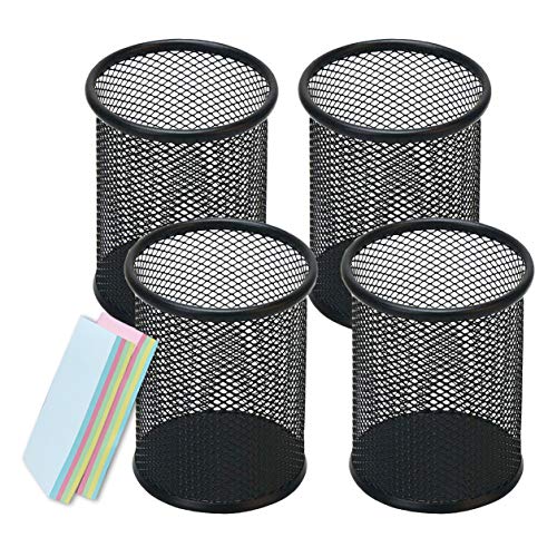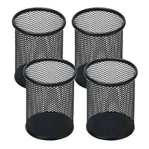 Qualsen Pennhållare för skrivbord, 4-pack, skrivbordsorganisatör i mesh, pennskål, pennhållare, kontorsmaterial, pennburkar för kontor, hem, klassrum, svart