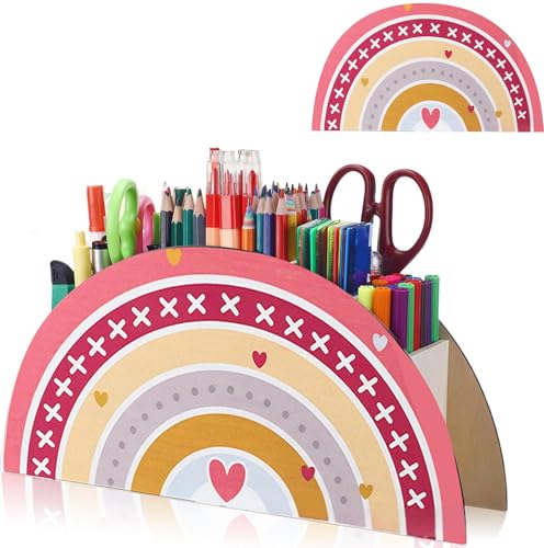 Jiahuade Pennhållare barn regnbåge, skrivbord kontor arrangör, pennkoger skrivbord, pennor arrangör trä, bordsarrangör, regnbågsarrangör, skrivbordsarrangör, regnbåge (A)
