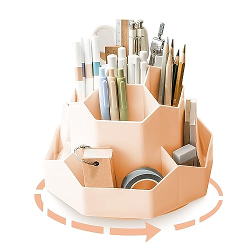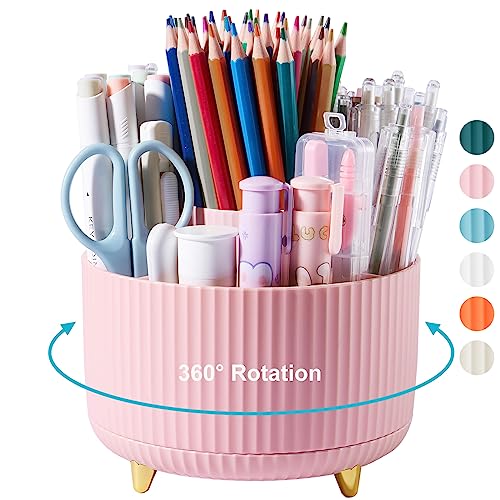 Lolocor Pennhållare för skrivbordet, 360 graders roterande pennhållare, 5 fack, pennorganisatörer och tillbehör, söt pennhållare för skrivbord, pennorganisering, förvaring för kontor, skola, hem, rosa