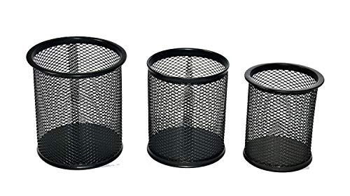 EUROXANTY Set 3 metall rund skrivbord pennhållare | Arrangör för kontorsmaterial i metallnät | Kontorsmaterial | Robust material