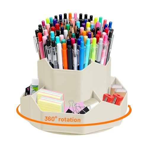 Euqvunn Roterande Pennhållare för Skrivbord, Pennkopp med 9 Självständiga Fack, 360° Sminkorganiserare Utrymmesbesparande Pennkopp för Barn, Moderna Skol- och Kontorsartiklar(Beige)