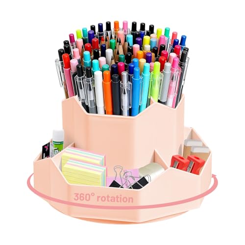 SKYDUE Skrivbordsförvaring, 360 graders pennhållare roterbar, pennförvaring med fack, pennhållare skrivbord för kontor, skola, hem (rosa)