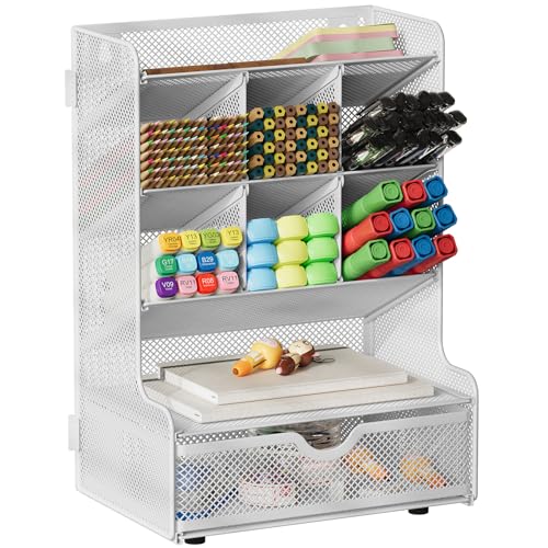 EOOUT Skrivbordsorganisatör, pennhållare för skrivbord, nät kontor skrivbordstillbehör med 8 fack och 1 låda brevpappershållare skolmaterial
