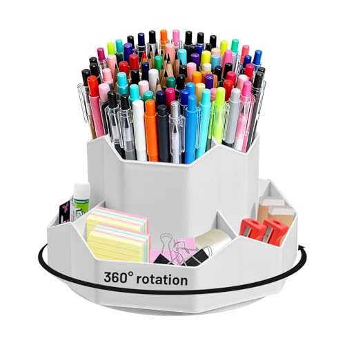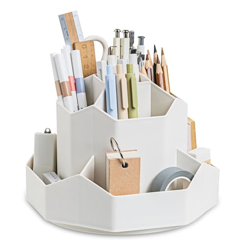 Lvjkes Roterande pennhållare, stationär organisatör, pennhållare för skrivbord 9 fack, uppgraderad stor kapacitet 360° roterbar, rymmer pennor, färgpennor, olika kontorsmaterial (vit)