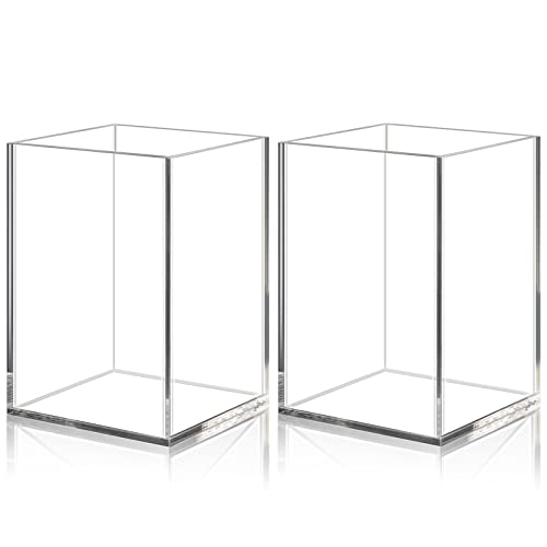 Uquelic Pennhållare i akryl, 2-pack klar pennkruka – skrivbordsmaterial förvaring sminkborstar hållare för skrivbord, akryl organiserare, pennhållare skrivbord prydligt