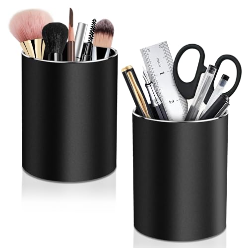 Runt pennställ i metall skrivbord, pennhållare, svart uppsättning om 2 metall rund pennlåda reservoarpenna pennhållare organisatör förvaringslåda för kontor, skola och hushåll, 8 x 10 cm