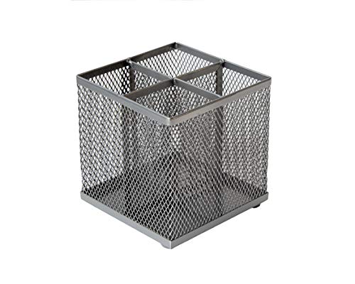 OSCO Silver Wiremesh fyrkantig pennkruka | 4 sektioner | pennhållare | snyggt skrivbord | kontorsarrangör | sminkförvaring | sminkdisplay | H 10,5 x B 10 x D10 cm |