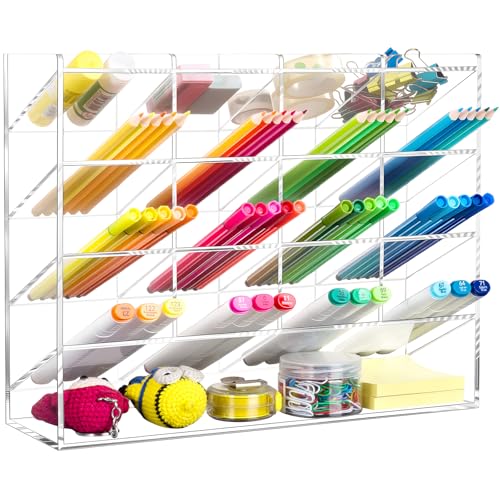 BEYGORM Vertikal markörorganisatör i akryl för 200 markörer, vinklade pennhållare skrivbordsorganisation, tydlig stor stationär pennhållare för skrivbord, konsttillbehör förvaringsarrangörer för