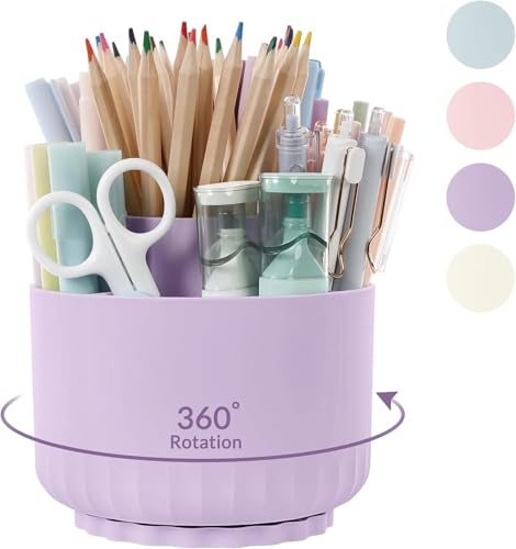 SKYDUE Skrivbordsförvaring, 360 graders pennhållare roterbar, pennförvaring med 5 fack, pennhållare skrivbord för kontor, skola, hem (ljuslila)