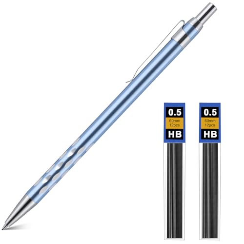 AOOSU metall blyertspenna set, 0,5 mm mekaniska pennor med 2 rör HB blyerts för studenter, skriva, rita