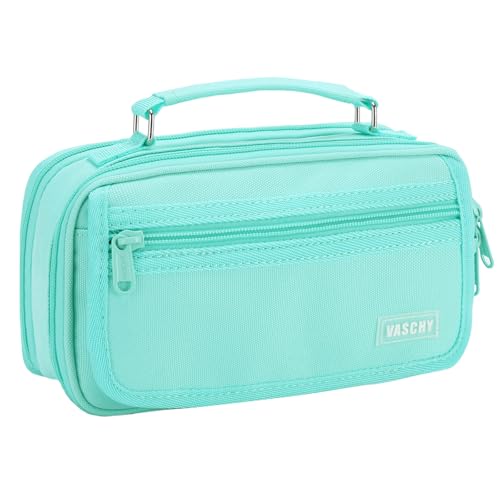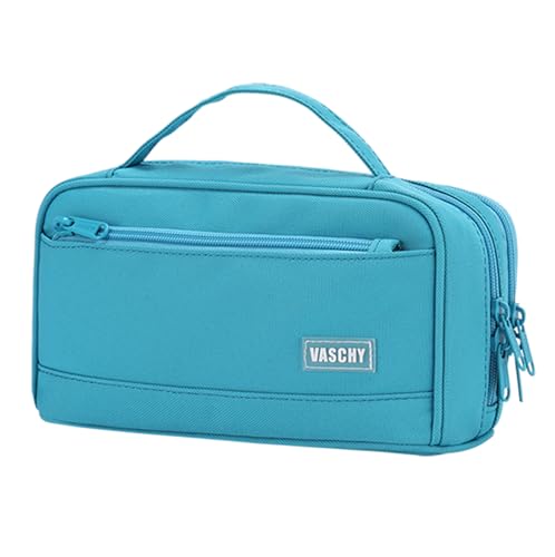 VASCHY Pennfodral, stor penna pennfodral organiseringshållare med bärbart handtag skolmaterial för barn, tonåringar, studenter, vuxna, Turq, Pennskrin
